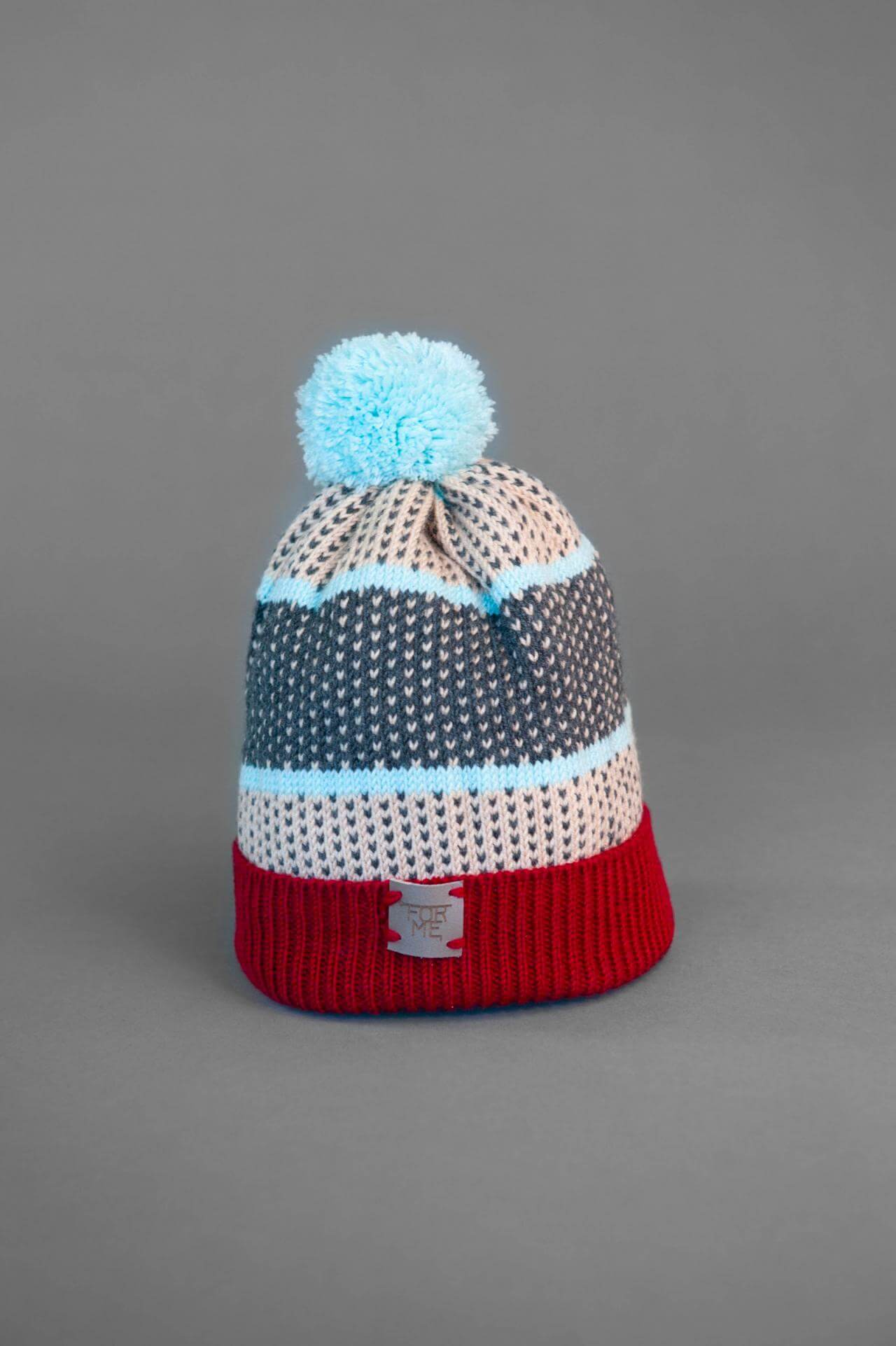 Knitted Beanie blue/red/grey