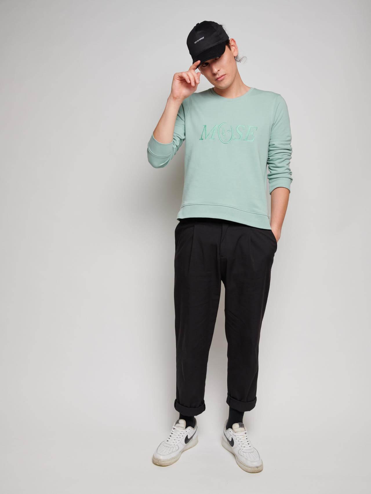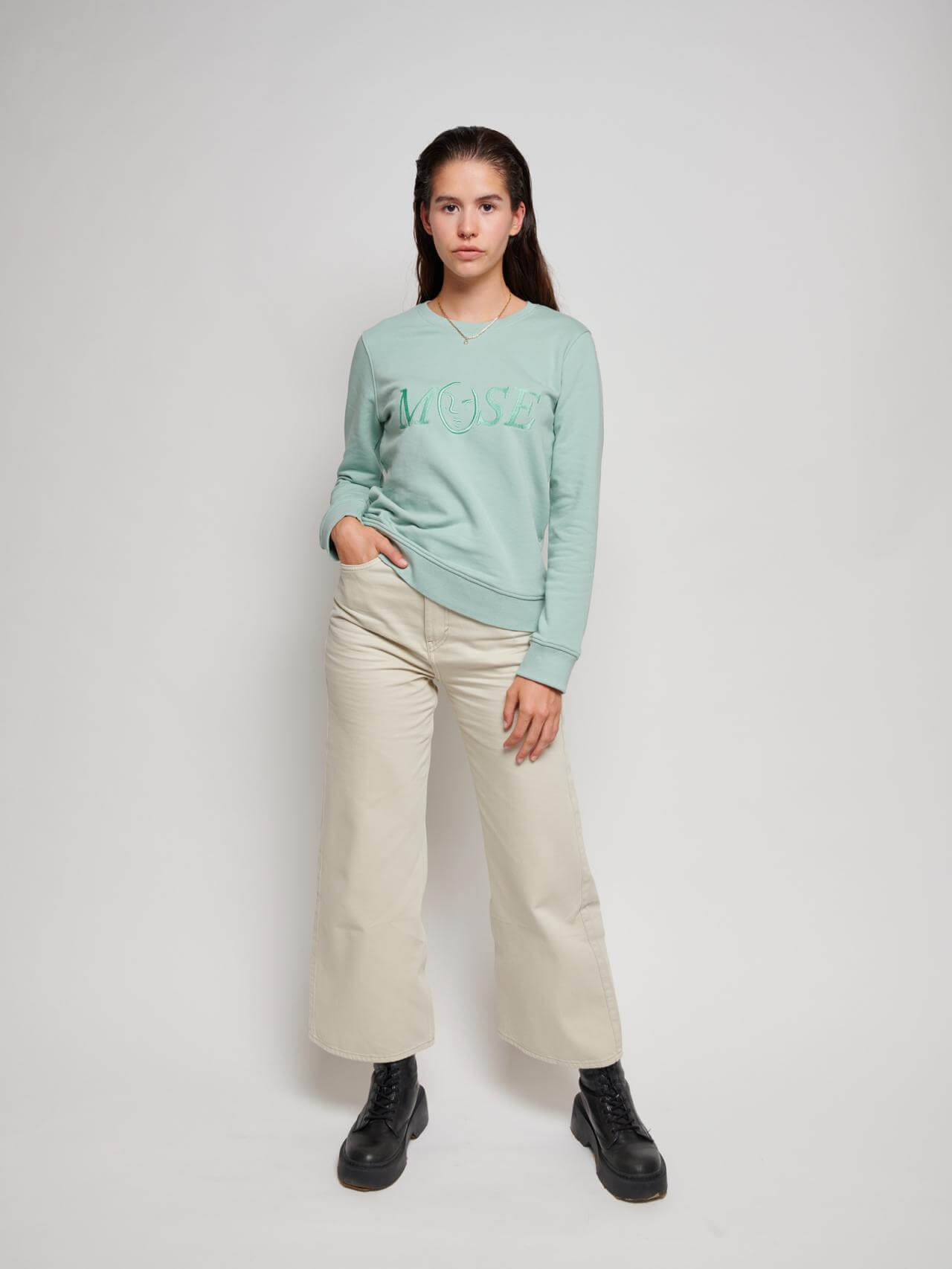 Our iconic Muse logo as a tone in tone embroidery for a vintage sweatshirt vibe. This sweater has a slight cropped fit and is designed to be styled by men and women.